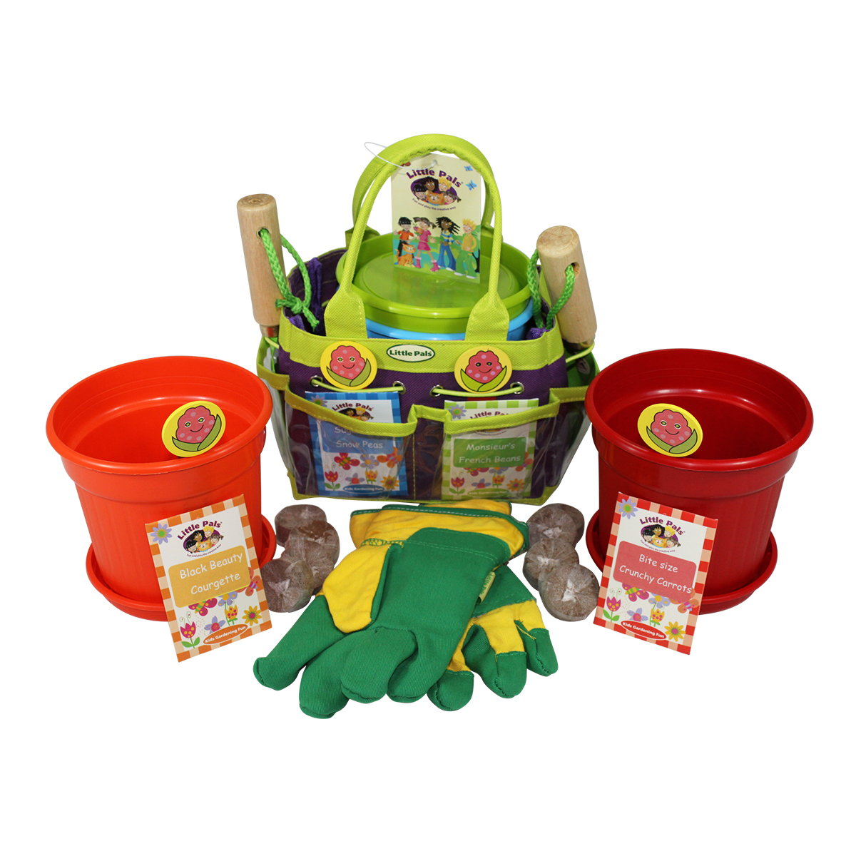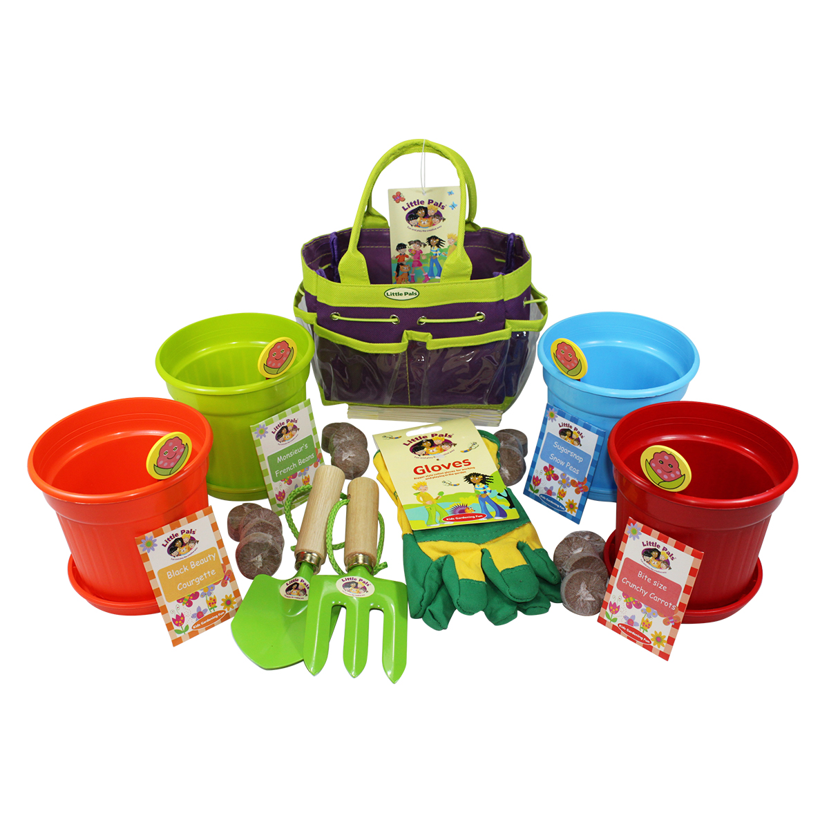 The veggie box kit also contains a pair of cotton rigger style gardening gloves with reinforced wrist and knuckle guard, ideal for helping to protect little hands, and keeping them clean in the garden. All jam packed into a smart purple and green gardeners carry bag.